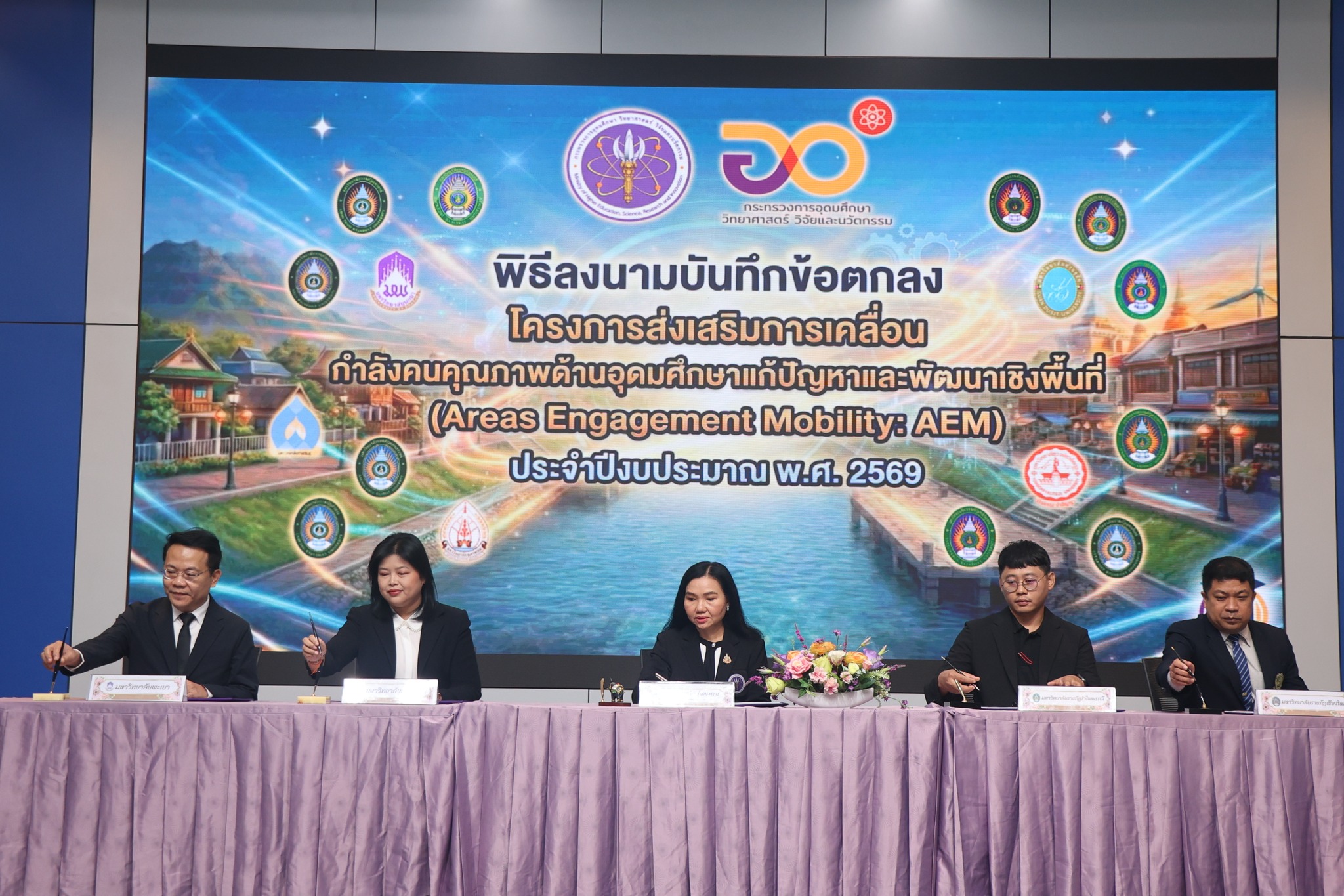 การประชุมและพิธีลงนามในครั้งนี้ จัดโดยกระทรวงการอุดมศึกษา วิทยาศาสตร์ วิจัยและนวัตกรรม (อว.) เพื่อขับเคลื่อนโครงการ “ส่งเสริมการเคลื่อนกำลังคนคุณภาพด้านอุดมศึกษาเพื่อแก้ปัญหาและพัฒนาเชิงพื้นที่” หรือ Areas Engagement Mobility (AEM) ซึ่งมีเป้าหมายในการนำองค์ความรู้ บุคลากรทางวิชาการ รวมถึงผลงานวิจัยและนวัตกรรมจากสถาบันอุดมศึกษา ลงไปสนับสนุนการแก้ไขปัญหาและพัฒนาศักยภาพของพื้นที่ในระดับชุมชนและท้องถิ่นอย่างเป็นรูปธรรม